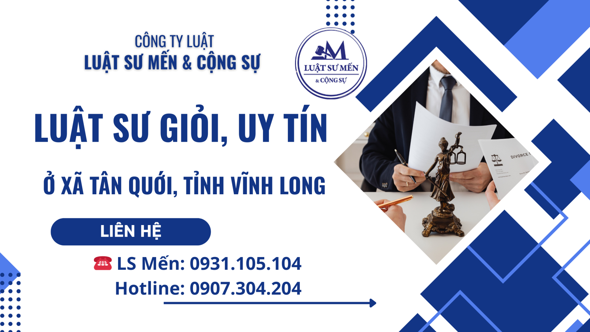Liên hệ Văn phòng Luật sư giỏi, uy tín ở Xã Tân Quới, Vĩnh Long, Công ty Luật giỏi, uy tín ở Xã Tân Quới, Vĩnh Long, Luật sư giỏi, uy tínở Xã Tân Quới, Vĩnh Long để được tư vấn pháp luật, tham gia tố tụng để bào chữa, bảo vệ quyền lợi cho bạn giỏi, uy tínở Xã Tân Quới, Vĩnh Long